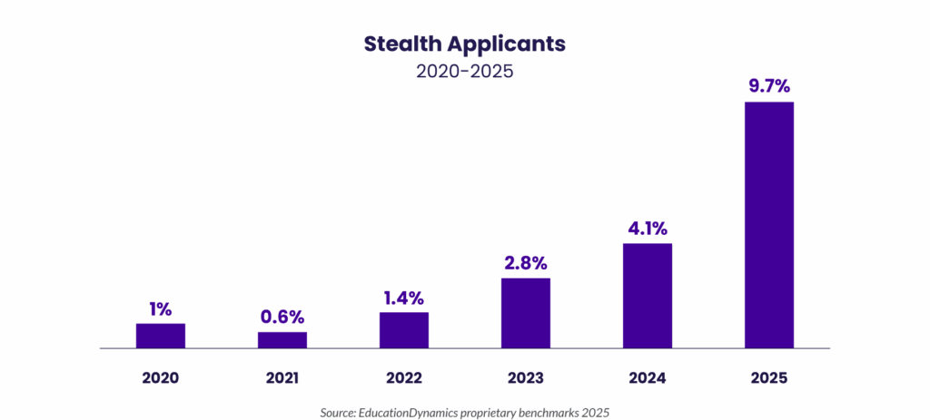 At the same time, stealth applicants now account for 9.7% of total applications, up from just 1% in 2020. They research independently, build their own shortlists, and apply when confident, often without entering a traditional funnel.