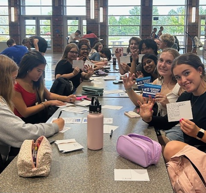 Members of the Hope Squad notice peers who seem down or isolated and reach out with a greeting, or sometimes a handmade card.