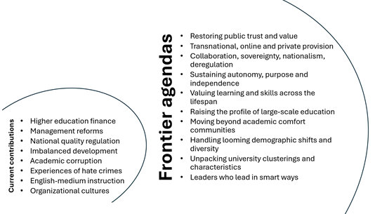 Once, such questions may have been ludicrous to provoke at the outset of a Policy Reviews in Higher Education (PRIHE) editorial. Not anymore. Accordingly, in the balance of this editorial we sketch frontier topics which higher education can embrace to drive positive reform, then current journal contributions (Figure 1). We conclude with a call to engage and transform.