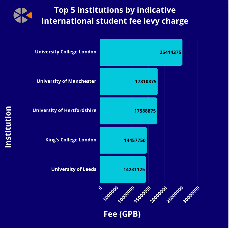 But larger institutions with higher numbers of international students will bear the brunt of the levy.