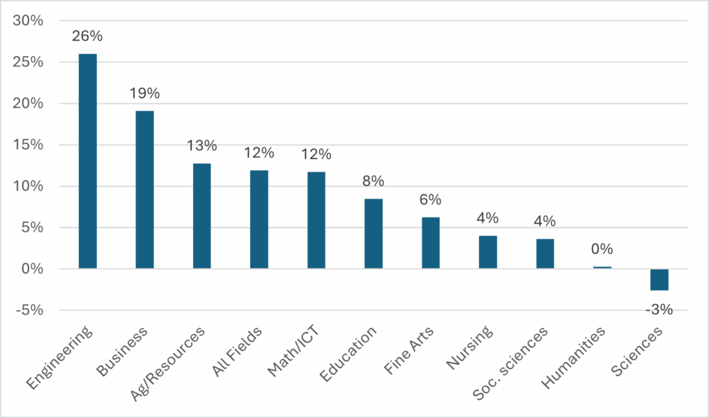 Figure 2: Average Undergraduate Tuition Fee by Field of Study, Canada, in $2024, 2006-07 to 2024-25