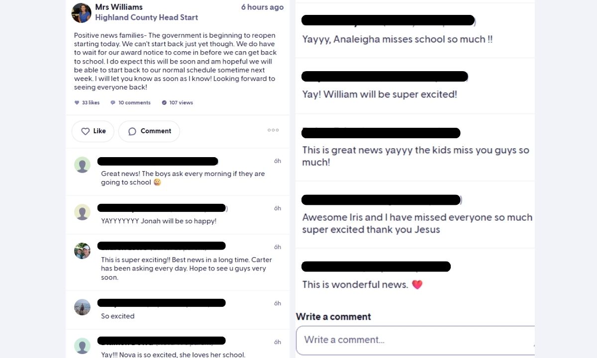 Valerie Williams, who runs a Head Start program in Appalachian Ohio, was excited to tell parents that classrooms would be reopening soon. (Valerie Williams)