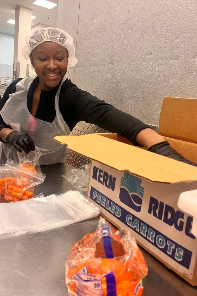 Sira Coulibaly, a member with the Philadelphia Higher Education Network for Neighborhood Development’s Next Steps AmeriCorps program, packs bags of food for the Metropolitan Area Neighborhood Nutrition Alliance. Credit: Courtesy of PHENND