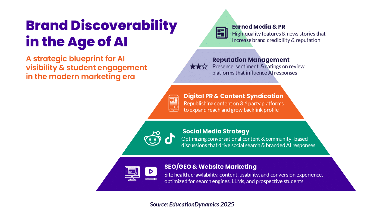 Optimize marketing for AI discoverability and AI powered platforms, while Integrating AI into advising, engagement and instruction.