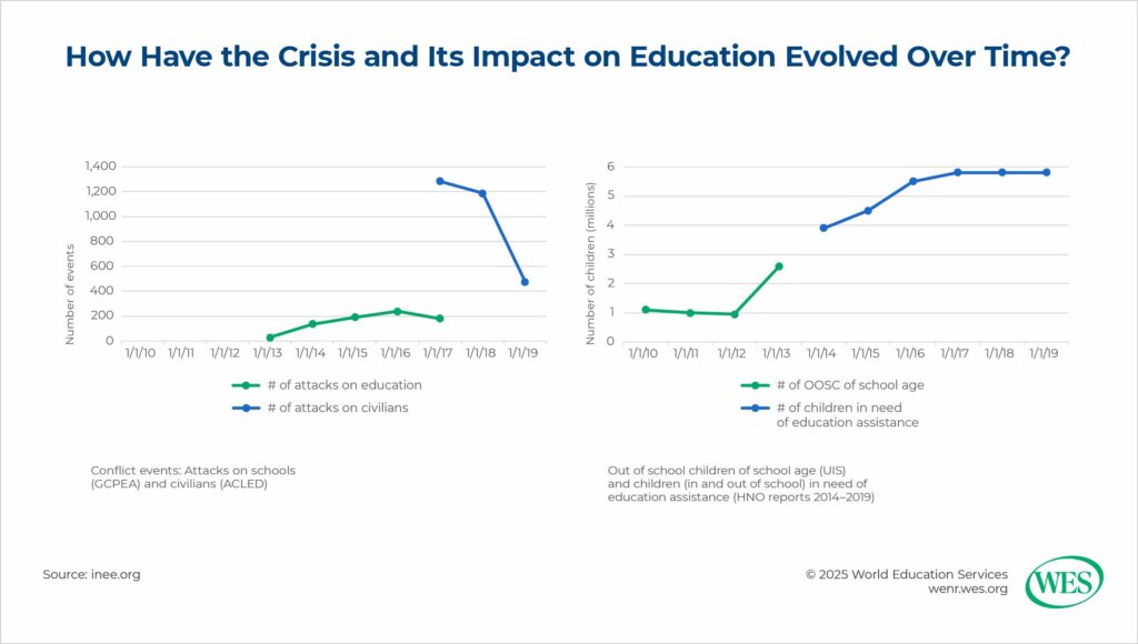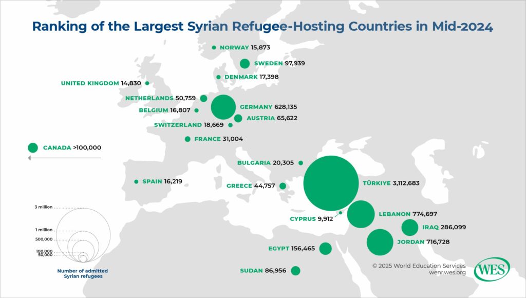 The war caused massive displacement of students and teachers, both within Syria and to neighboring countries. More than 7.4 million Syrians were internally displaced, while 5.6 million sought refuge abroad, according to the UNHCR. As a result, millions of children and young adults have been cut off from the opportunity to obtain an education.