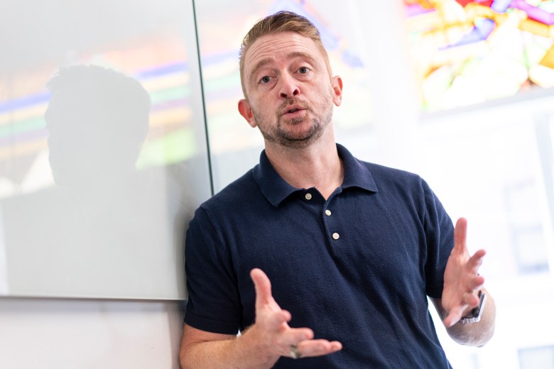 Sean Luther, head of InnovatePGH, at one of the organization’s co-working spaces. One reason tech companies have come to Pittsburgh “is because of those non-native-born workers,” Luther says. Credit: Nancy Andrews for The Hechinger Report